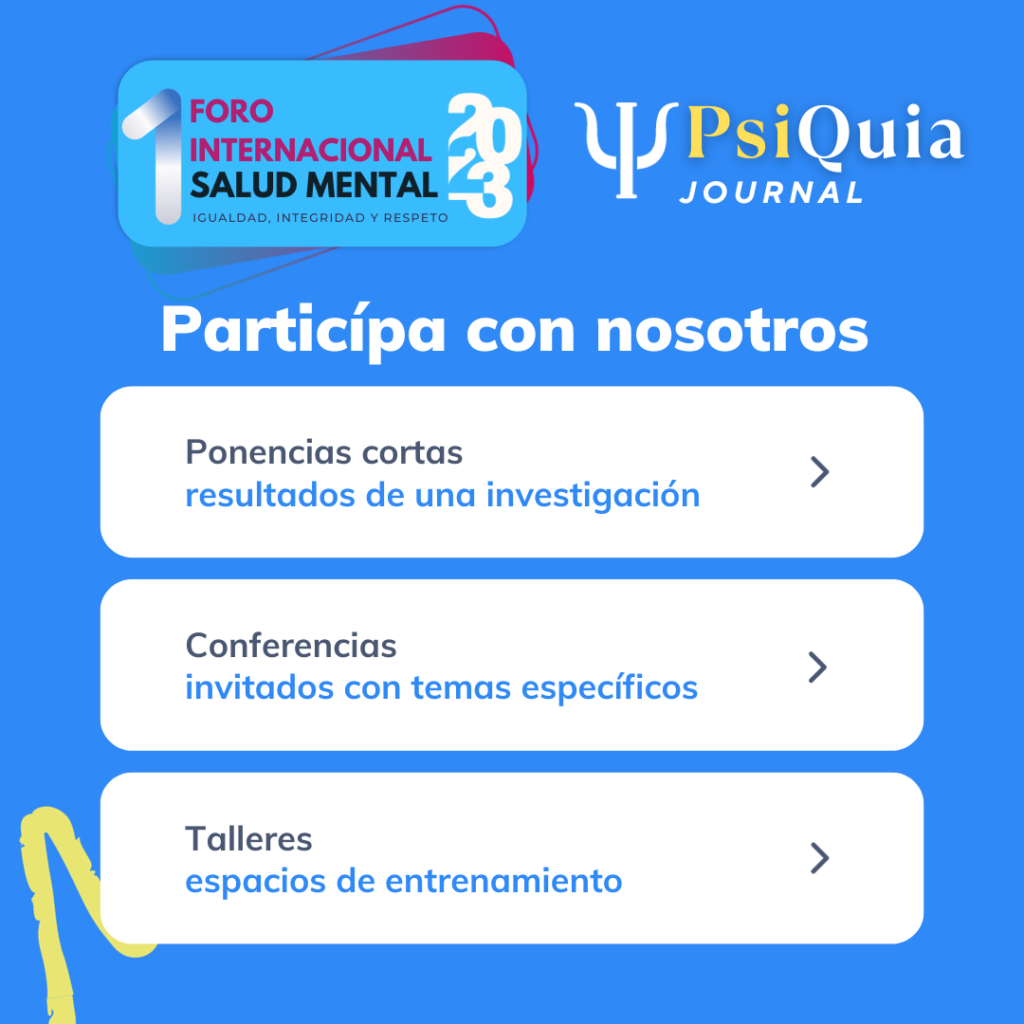 El Foro Internacional en Salud Mental es un evento organizado de forma voluntaria por una comunidad de profesionales especialistas en salud mental de Hispanoamérica, cuyo objetivo es promover la salud mental y la educación, facilitar el intercambio de conocimientos, abordar la estigmatización, explorar soluciones innovadoras, estrategias de intervención, atención centrada en el paciente, prevención y promoción, trastornos co-ocurrentes, desafíos éticos y legales y más temas relacionados a áreas de la Psicología, Psiquiatría y Educación.